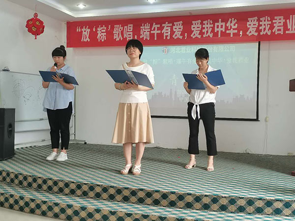 2020??4日上午,适逢端午佳节前夕,为弘扬中华传统文化,提高君业人爱国主义思想,增强员工们对祖国、对家乡、对君业的热爱之情,提高君业人的文化素养,丰富员工的精神文化生活?a href="http://0832sw.com/" target="_blank">河北君业科技股份有限公司億彩董事长潘存业、总经理杨智丽对员工殷切关怀,部署开展端午节特别纪念活动。为此,河北君业科技股份有限公司组织开展了“放‘粽’歌唱,端午有爱,爱我中华,爱我君业”青春诗会活动,活动分为公司总部(临港区)和总部基地(丰南城区),两地同时进行,全体员工参加,青春诗会后,全员两地共进午餐,欢度端午节?