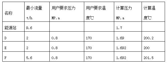 经蒸汽管道水力计算后,得出第二片区用户(D、E、F)最小流量工况下蒸汽管道水力计算结果,见??