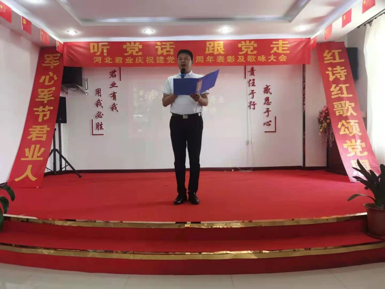 億彩 河北å›ä¸šç§‘技股份有é™å…¬å¸è‘£äº‹é•¿æ½˜å˜ä¸šã€æ€»ç»ç†æ¨æ™ºä¸½å‡ºå¸æœ¬æ¬¡ä¼šè®®ã€‚大会的共分为三个部分,第一部分是观看三个专题片——《建党百年,丰功伟业》ã€ã€Šçœå§”常委ã€å¸‚委书记到å›ä¸šã€‹ã€ã€Šå›ä¸šå…šæ——çº¢ã€‹ï¼›å¯¹å…¬å¸å†…涌现出的æªå®ˆå…šçš„ç« ç¨‹ï¼Œå›¢ç»“åä½œï¼Œä»»åŠ³ä»»æ€¨ï¼Œæ— ç§å¥‰çŒ®ï¼Œå¼€æ‹“è¿›å–的优秀共产党员和先进入党积æžåˆ†å予以表彰;对è¿ç”¨æ–°åª’体,从多角度ã€å¤šå±‚é¢ã€å¤šæ•ˆæžœçš„å®£ä¼ äº†å…¬å¸çš„产å“å’Œäº‹è¿¹çš„å…ˆè¿›ä¸ªäººäºˆä»¥è¡¨å½°ï¼›å…šå‘˜é‡æ¸©å…¥å…šèª“è¯ï¼Œåšå®šç†æƒ³ä¿¡å¿µï¼Œå¢žå¼ºå…šå‘˜ä»¬çš„责任感和使命感。第二部分是全体å›ä¸šäººå”±çº¢æŒã€é¢‚红诗æŒå’大会,致敬建å…?00周年。第三部分是董事长潘å˜ä¸šè®²è¯ï¼Œå…¨ä½“å›ä¸šäººå…±åŒåˆå”±ã€Šæ²¡æœ‰å…±äº§å…šï¼Œå°±æ²¡æœ‰æ–°ä¸å›½ã€‹ã€‚大会第一部分和第三部分由å™çŽ‰æ˜¥ä¸»å¸ä¸»æŒï¼Œç¬¬äºŒéƒ¨åˆ†ç”±æŽå¿—æ–Œã€è–„å›ä¸»æŒã€?