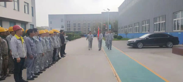 升旗手由退役军人、采购部部长王伟担任,护旗手由吴顺、罗晓涛、刘占然、杨祥龙、李志斌 、郝独一担任,他们组成了威武的国旗护卫队?