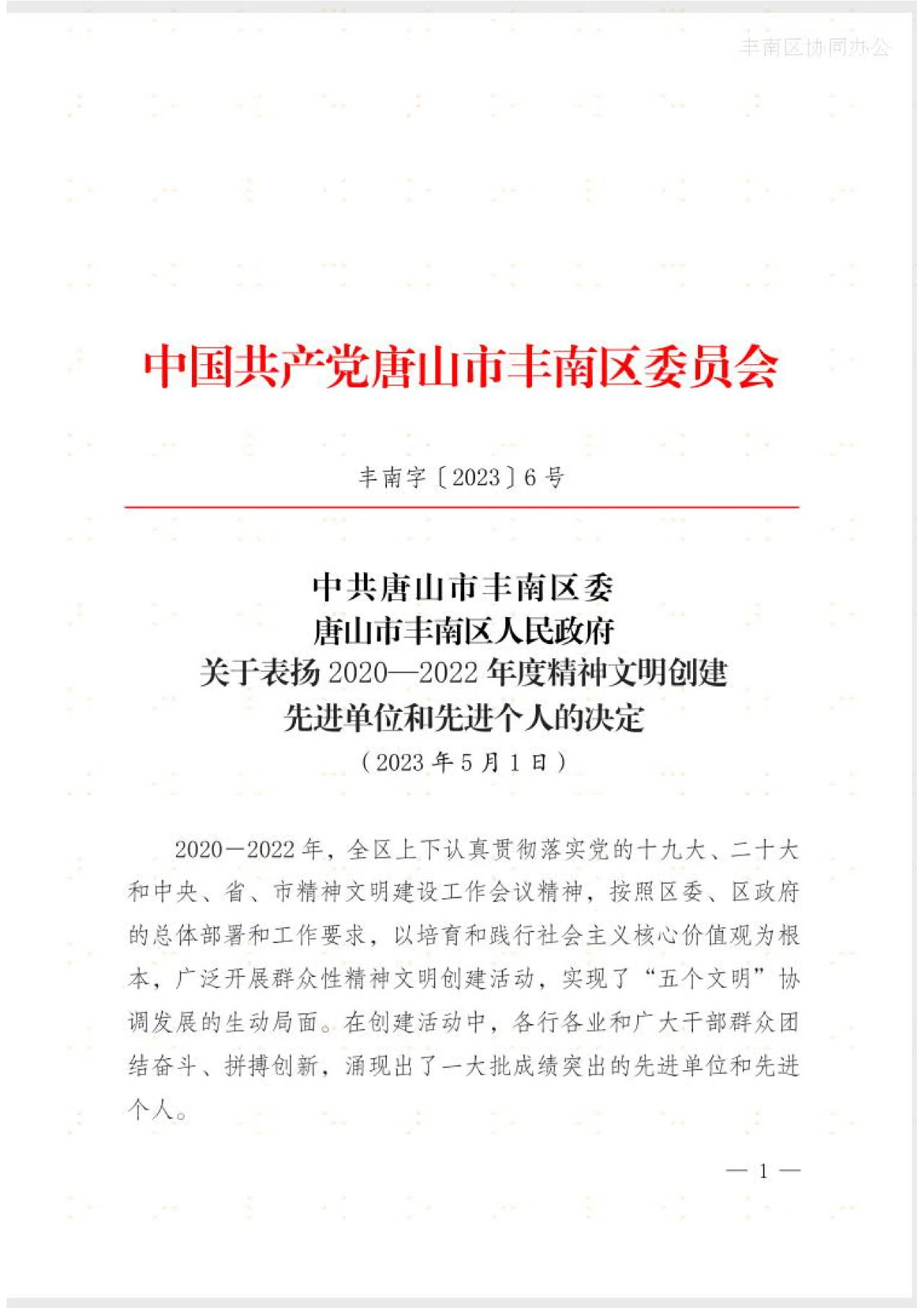近日,中国共产党唐山市丰南区委员会印发《中共唐山市丰南区委、唐山市丰南区人民政府关于表?020-2022年度精神文明创建先进单位和先进个人的决定》,对我?020-2022年度精神文明创建先进单位和先进个人进行表彰,河北君业科技股份有限公司億彩荣获丰南区?020-2022年度精神文明创建先进单位”荣誉称号。近年来,河北君业科技股份有限公司高度重视精神文明建设,坚持以助力公司高质量发展为目标,以强化职工文明素质为根本,以精神文明创建活动为载体,切实强化各项任务措施,扎实开展文明创建活动,创优美环境,抓优质服务,树优良作风,为建设高质量发展示范区、生态宜居样板区作出了突出贡献?